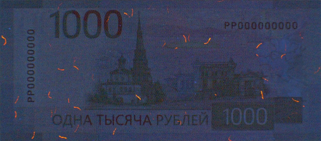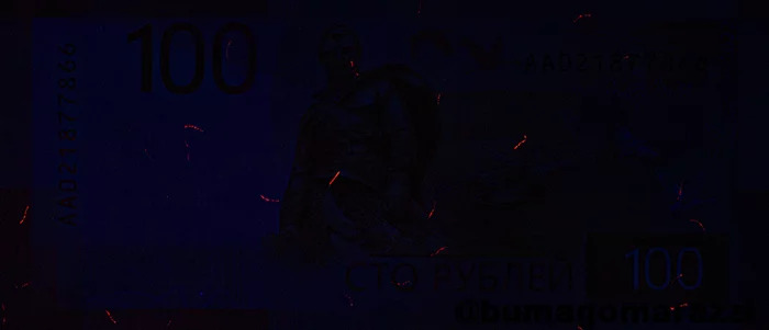 Изображение элементов банкноты, обладающих люминесценцией под воздействием ультрафиолетового излучения