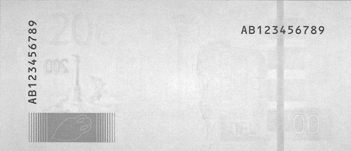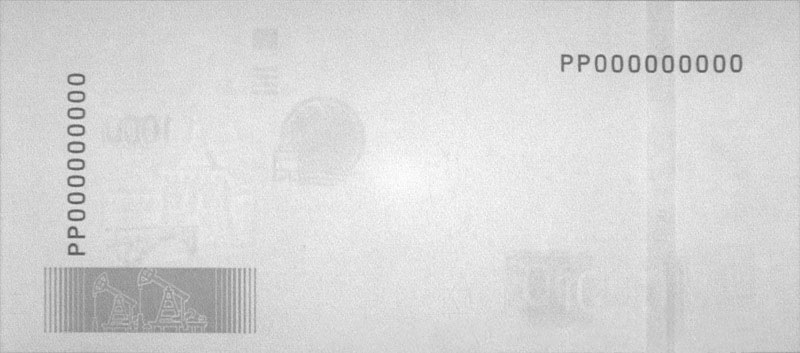 - Серийные номера напечатаны краской тёмно-синего цвета: один — вертикально, другой — горизонтально.