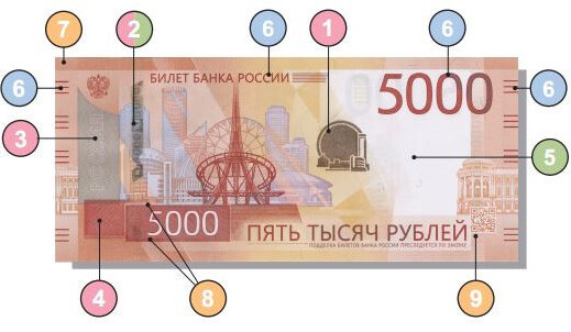 Представляем обзор современных защитных признаков банкнот Банка России — как воспринимаемых органами чувств, так и требующих применения специальных технических средств.
