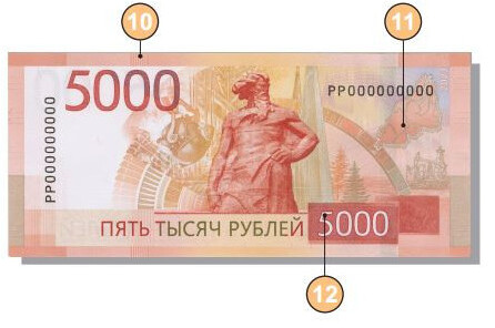 - QR-код на оборотной стороне ведёт на официальный сайт Банка России с описанием банкнот нового поколения.