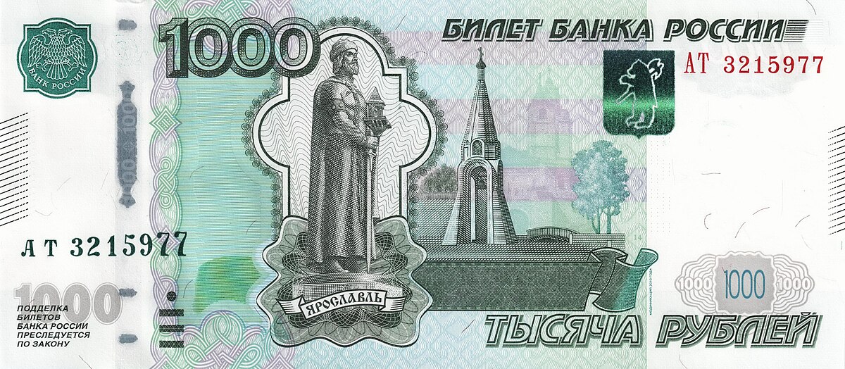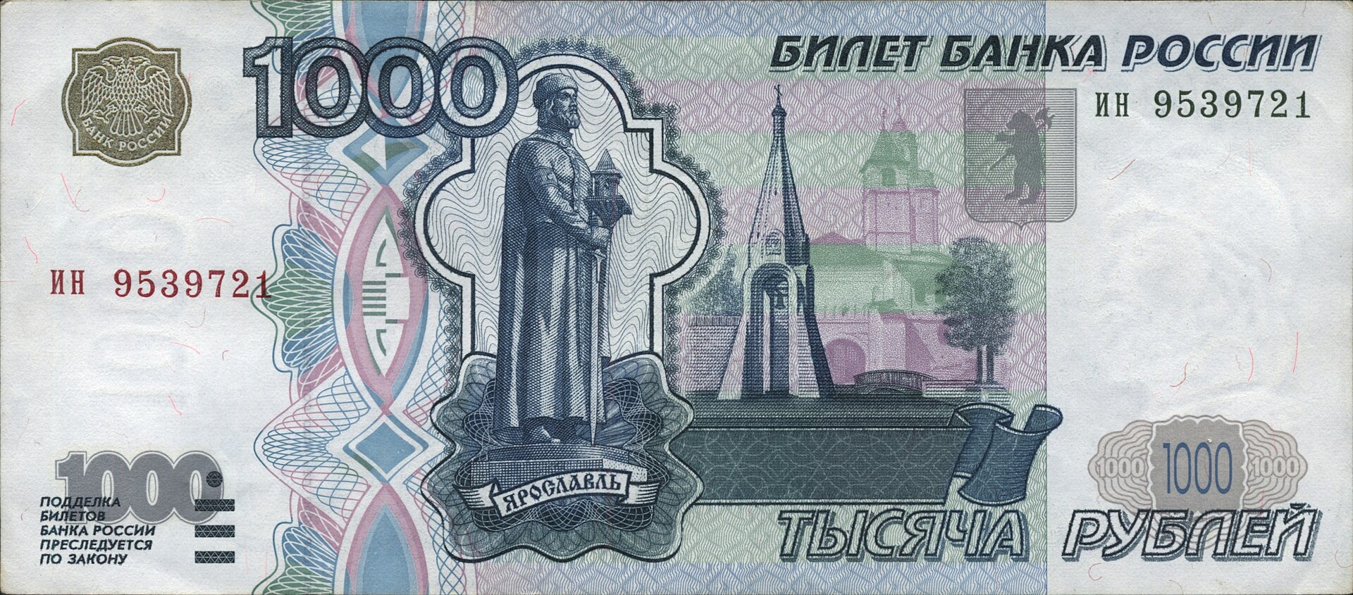 ⮟ Банкнота Банка России образца 1997 года номиналом 1000 рублей ⮟
