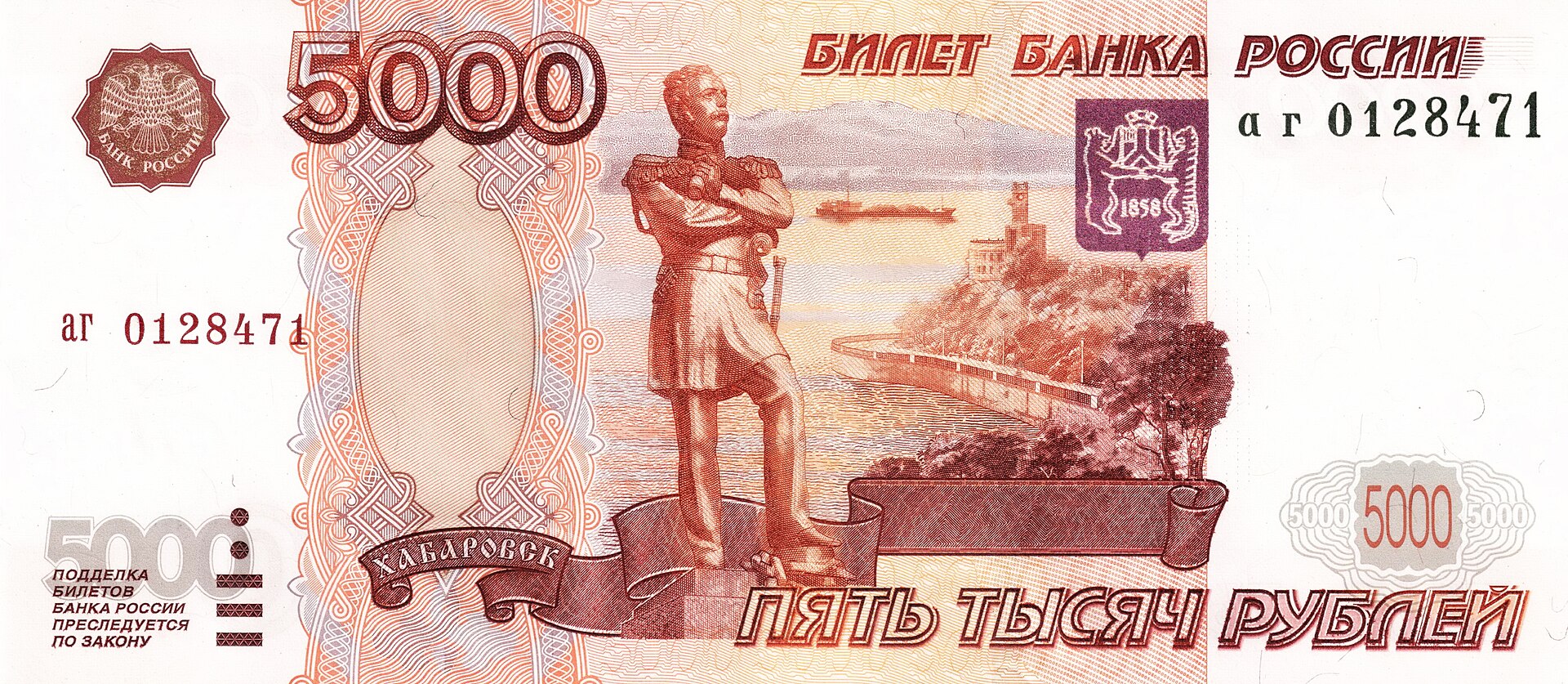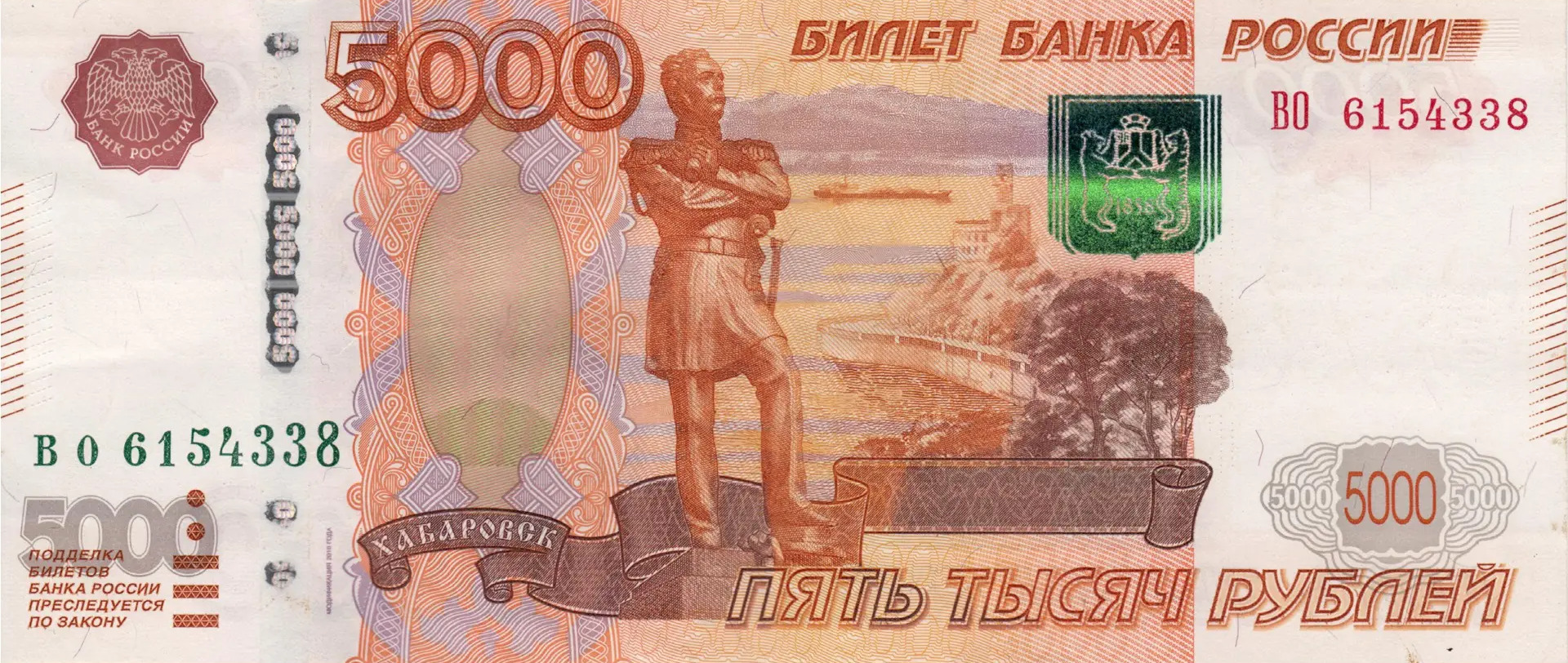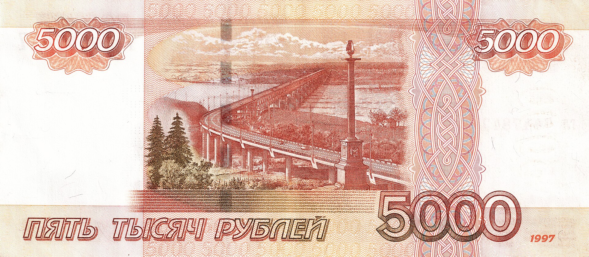 ⮟ Банкнота Банка России образца 1997 года номиналом 5000 рублей ⮟