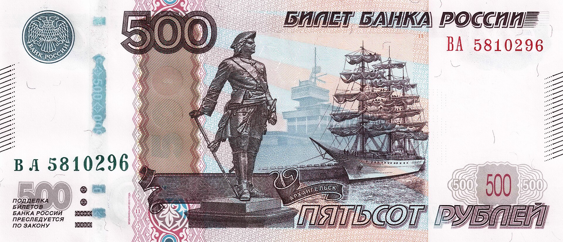 ⮟ Банкнота Банка России образца 1997 года номиналом 500 рублей модификации 2001 года ⮟