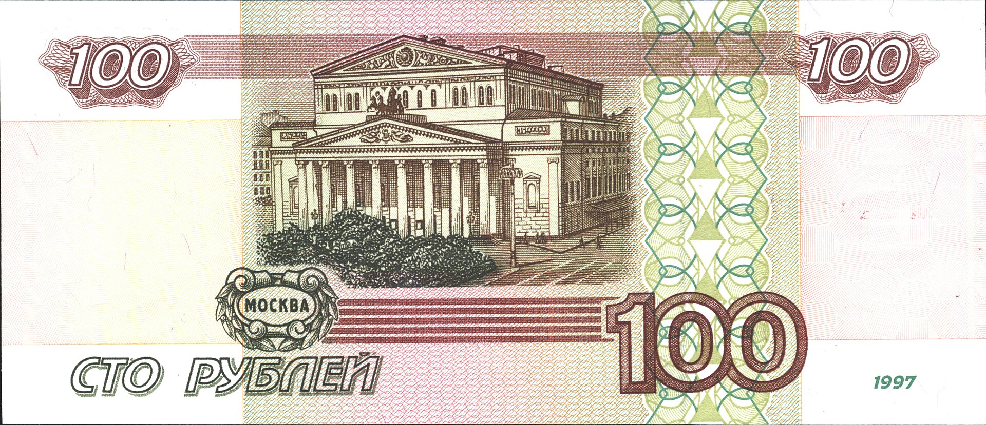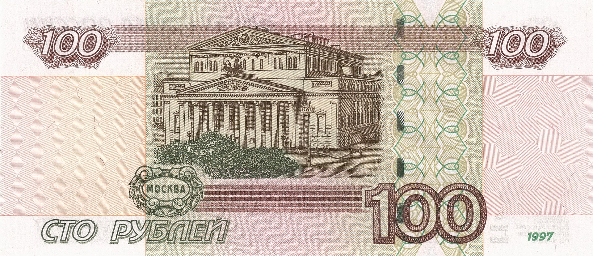 ⮟ Банкнота Банка России образца 1997 года номиналом 100 рублей ⮟