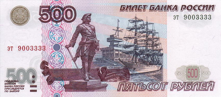 ⮟ Банкнота Банка России образца 1997 года номиналом 500 рублей ⮟
