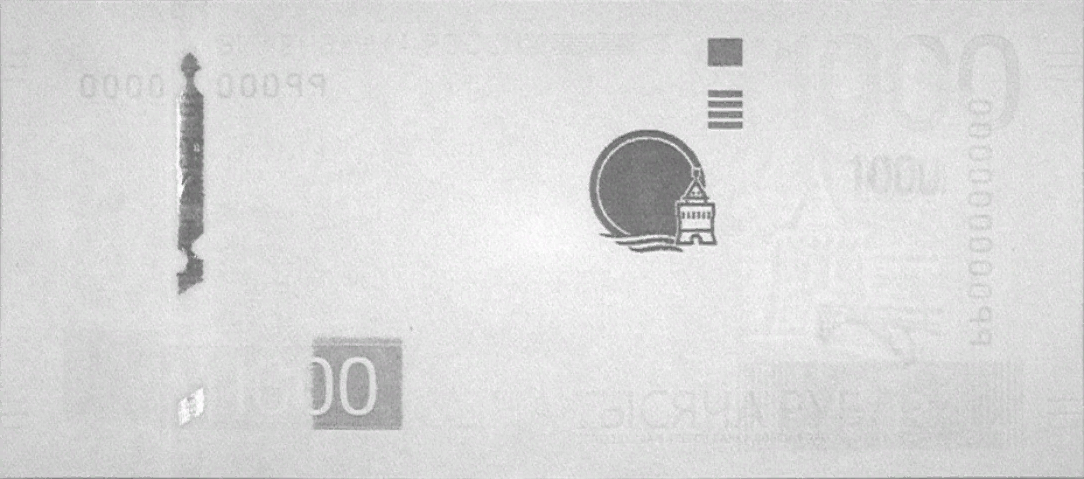 1. Изображение банкноты содержит все элементы, распознаваемые при автоматической проверке подлинности.