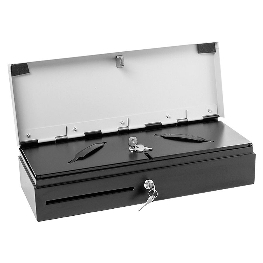 Металлический ящик для денег POScenter 460K – компактная и в то же время довольно вместительная модель, подходящая для работы кассира в небольшой прикассовой зоне. Благодаря вертикальной конструкции и откидной крышке выдвигать ящик слишком далеко не потребуется, а 4 удобных отделения для купюр оборудованы специальными металлическими зажимами, фиксирующими даже крупные суммы. Количество отделений под монеты стандартное – 8 отсеков.