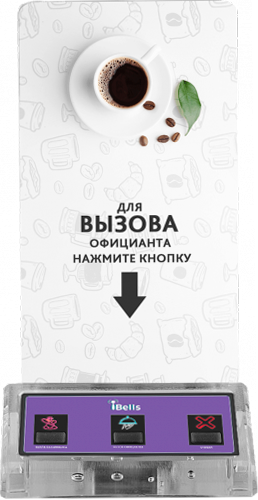 - При нажатии загорается красный индикатор. Это значит, что вызов уже отправлен, и сотрудник получил сообщение с указанием номера стола, где его ждут.