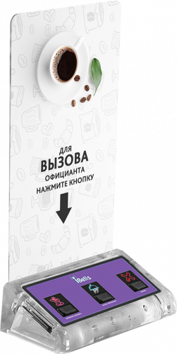 - Кнопка привлекает внимание клиентов благодаря необычному дизайну. Разместите в прозрачной подставке спецпредложение, блюдо дня или просто меню.