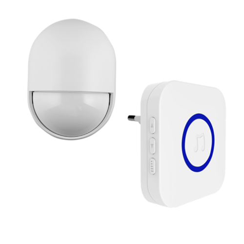 В комплект входят сенсорный датчик движения M05 и стационарный приемник SA1. При необходимости можно дополнить комплект любыми кнопками вызова и приемниками из линейки Smart.
