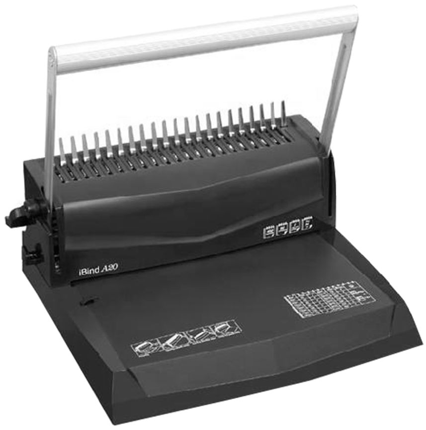 Gladwork iBind A20 мощный переплетчик на пластиковую пружину для интенсивного использования (но не 24ч в сутки — не в промышленных объемах). Горизонтальная перфорация. Максимальный диаметр пружины — 51мм. Максимальный формат — А4 по длинной стороне. Максимальная толщина переплетаемого документа — 450 листов (плотностью 70-80г/м2).
