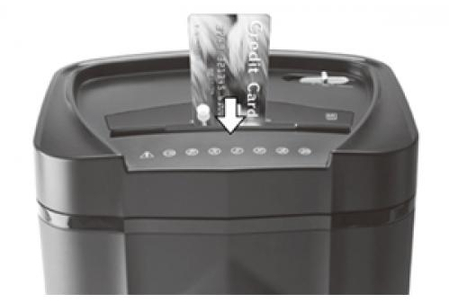 Стильный уничтожитель для офисного использования с высокой скоростью резки, оснащен индикаторами включения, выдвинутой корзины, перегрузки, перегрева.
