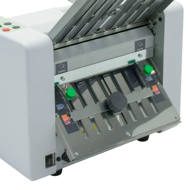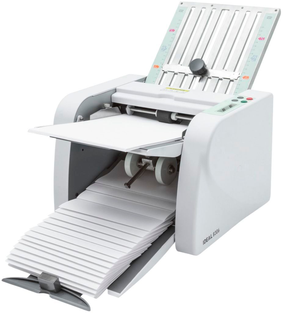 Компактная фальцовочная машина Ideal 8306 Компактная фальцовочная машина для четырех типов сгибов и струйного выброса бумаги.