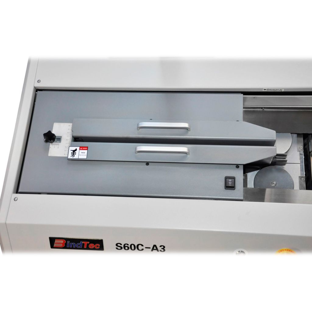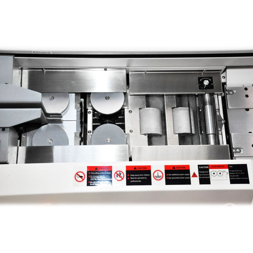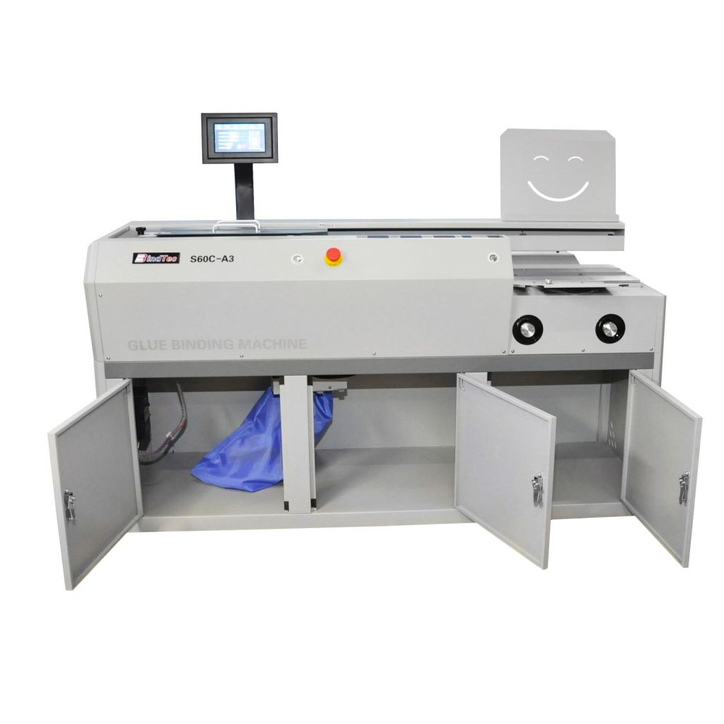 Термоклеевая машина BindTec S60С-A3 отличается от всех других термоклеевых машин наличием профессиональной системы нанесения термоклея на корешок книжного блока – два клеевых ролика и подогреваемый вал удаления излишков термоклея. Машина работает с форматом бумаги до А3. Конечно, дополнительная боковая проклейка в наличии.