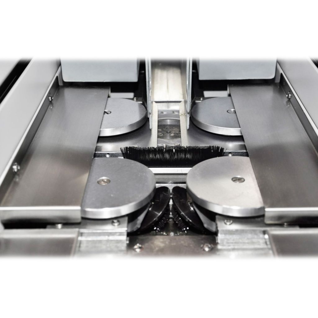 - Ролики боковой проклейки имеют свою отдельную клеевую ванну, с отдельным нагревателем, термостатом, датчиком температуры. Благодаря этому вы можете использовать разные типы клеев с разной рабочей температурой для проклейки корешка и боковой проклейки;