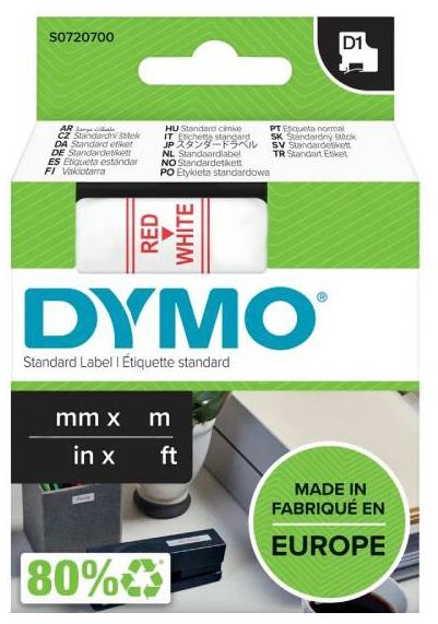 Картридж с виниловой лентой D1 для принтеров DYMO Label Manager, пластик, красный шрифт, 9 мм х 7 м Белый, (5 шт/уп) (DYMO40915)