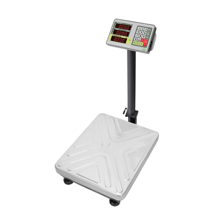Рама выполнена из прочной стали. Габариты корпуса: 520x300x970 мм. Платформа сделана из нержавеющей стали. Размеры платформы 400*300мм. Устройство подходит для взвешивания крупных и средних партий товара. Максимальный предел взвешивания – 60 кг. Минимальный – 200 гр. Цена деления: 10 гр.